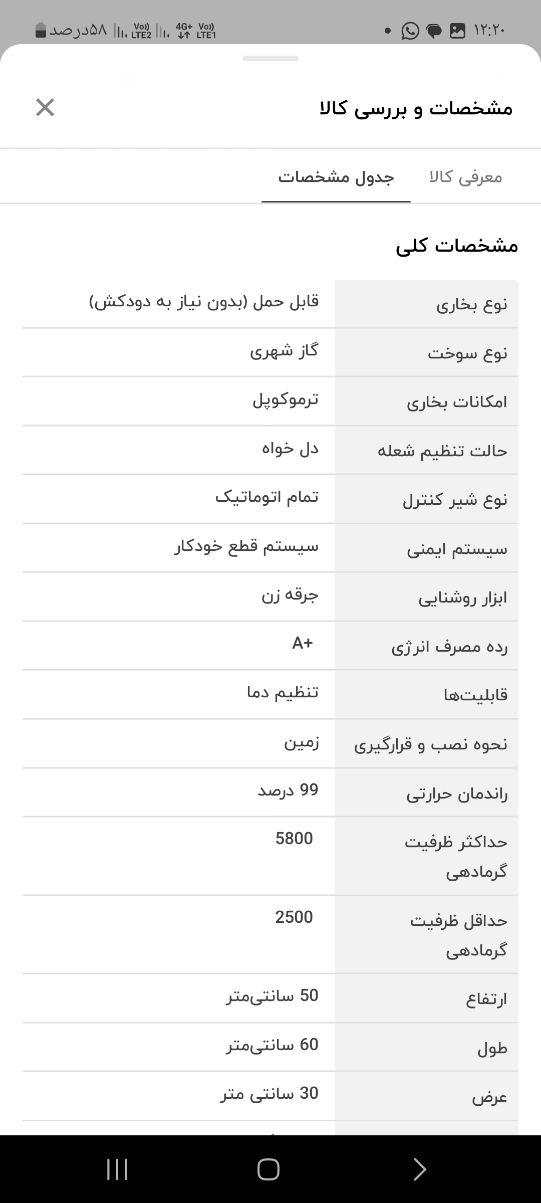 این بخاری باکمترین مصرف گاز حدود یک سوم یک بخاری دودکش دار، فضایی معادل ۵۰ تا۷۰ متررا گرم میکندودرتابستان به وسیله فن تعبیه شده مانندپنکه عمل خواهدکرد